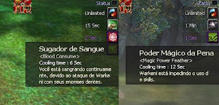 O Chicote de Vinha possui aquele debuff muito conhecido dentro do Jardim de Mirza, que deixa o char em uma cor negra, impossibilitando-o de se mover/atacar. Esse debuff não tira HP.